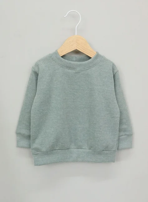 A textura canelada deixa o visual mais moderno e delicado ao mesmo tempo. O acabamento na gola, nos punhos e na barra mantém a blusa ajustada ao corpo, sem apertar e sem subir durante as brincadeiras.