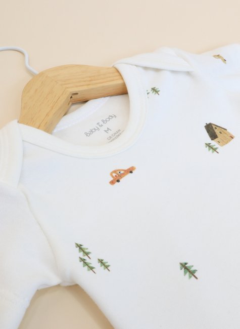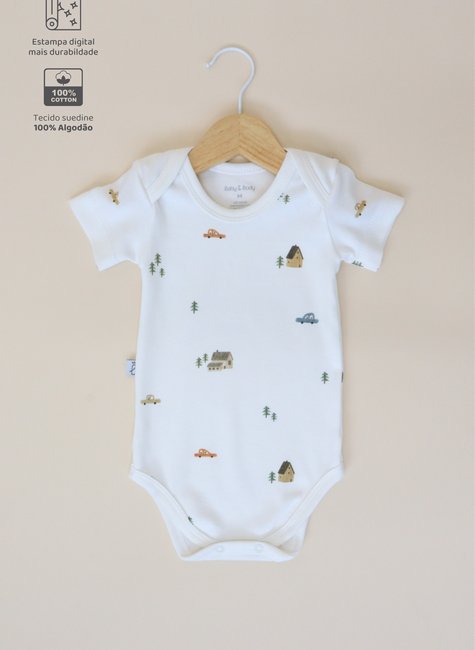 O nosso body é confeccionado em tecido suedine premium 100% algodão, garantindo um toque muito macio, respirabilidade e conforto para a pele delicada do seu bebê. A modelagem anatômica, aliada ao caimento suave do suedine, proporciona liberdade de movimento e aconchego, ideal para o dia a dia ou passeios especiais.