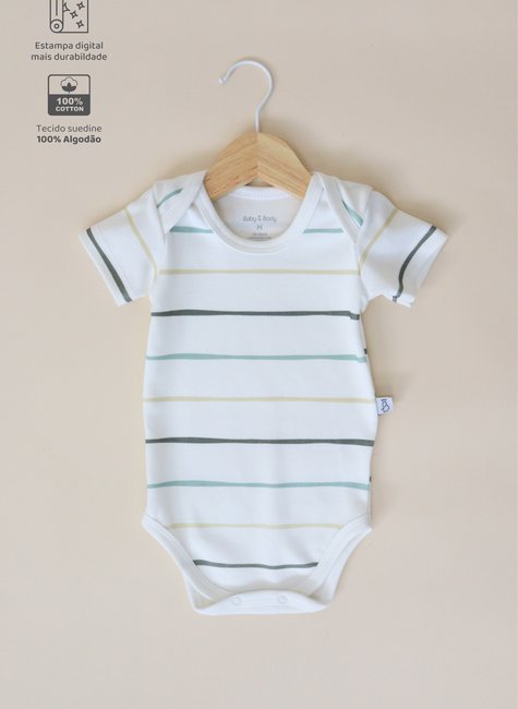 Graças ao fechamento prático com botões de pressão e gola envelope, vestir e trocar o bebê se torna muito mais rápido e simples. Além disso, o tecido possui ótima resistência, mantendo o formato e a maciez mesmo após várias lavagens.