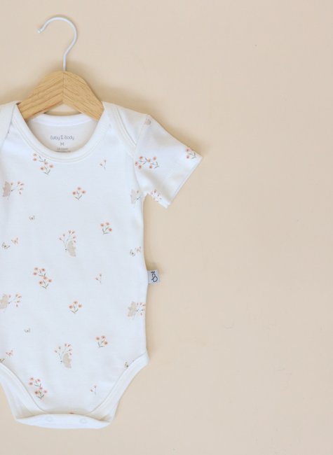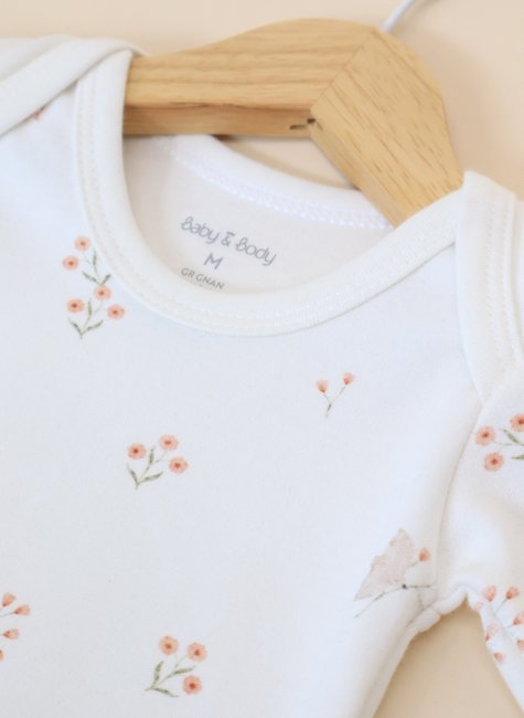 O nosso body é confeccionado em tecido suedine premium 100% algodão, garantindo um toque muito macio, respirabilidade e conforto para a pele delicada do seu bebê. A modelagem anatômica, aliada ao caimento suave do suedine, proporciona liberdade de movimento e aconchego, ideal para o dia a dia ou passeios especiais.