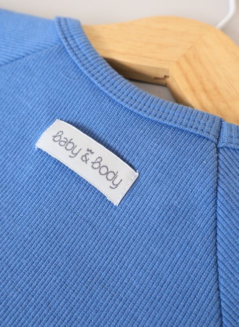 Ela tem uma textura delicada e elegante, mas o que realmente conquista é a elasticidade natural do tecido, que se ajusta ao corpo do bebê sem ficar rígida e sem limitar os movimentos.