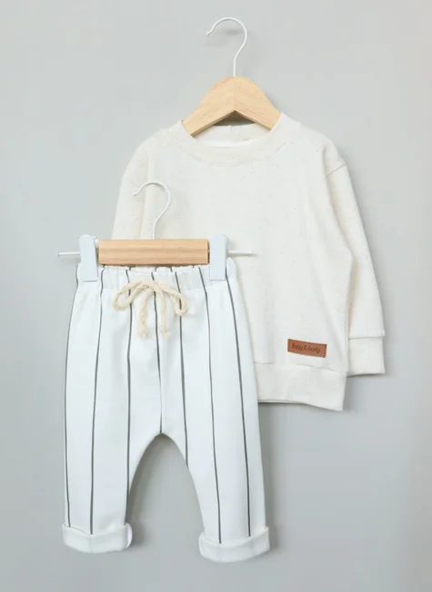 A calça tem modelagem saruel, com o gancho mais baixo e um caimento mais soltinho no corpo. Isso faz toda a diferença no dia a dia: dá liberdade para o bebê se movimentar à vontade e ainda acomoda melhor a fralda, sem apertar ou incomodar.