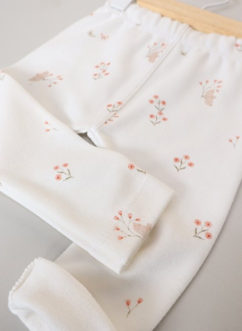 Ela tem uma textura delicada e elegante, mas o que realmente conquista é a elasticidade natural do tecido, que se ajusta ao corpo do bebê sem ficar rígida e sem limitar os movimentos.