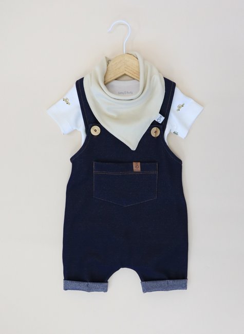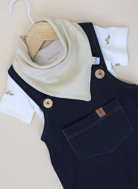 Conjunto de jardineira, body e babador Baby&Body, uma combinação perfeita de estilo e conforto para os momentos especiais do seu pequeno. Este conjunto foi cuidadosamente projetado para garantir que seu bebê fique confortável e pareça estiloso em qualquer ocasião.