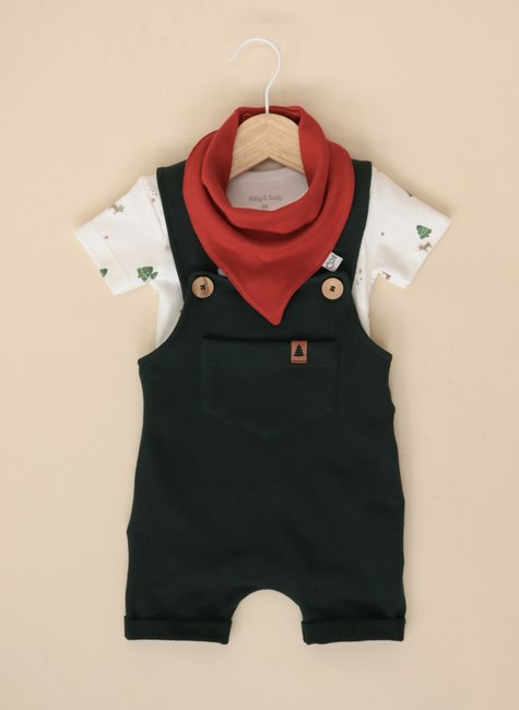 Conjunto Jardineira Curta e Body Estampado - Coleção de Natal Baby&Body