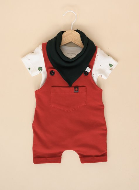 Conjunto Jardineira Curta e Body Estampado - Coleção de Natal Baby&Body