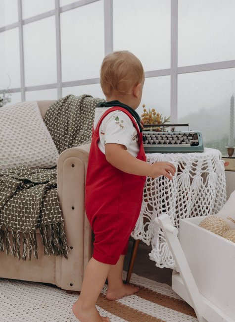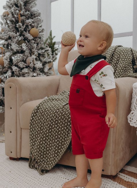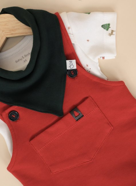 O Conjunto de Jardineira e Body foi pensado para vestir o seu bebê com conforto, delicadeza e estilo. Em um visual encantador que combina praticidade e charme natalino. Body produzido em suedine 100% algodão premium e Jardineira produzida em Molecotton, que mistura perfeitamente a maciez do algodão com a elasticidade e conforto do elastano, o conjunto proporciona toque suave e respirabilidade, respeitando a pele sensível do bebê.