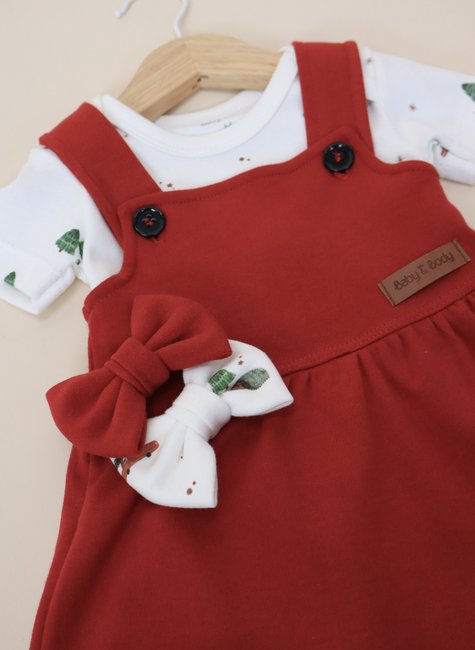 Conjunto Jardineira Vestido e Body Estampado - Coleção de Natal Baby&Body
