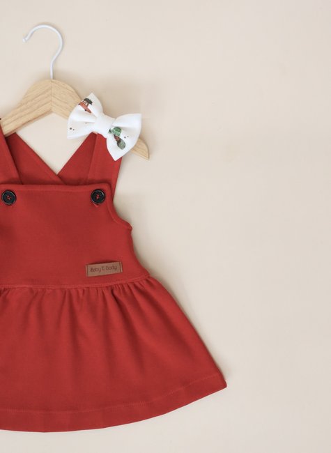 Conjunto Jardineira Vestido Vermelho e Body Estampado - Claus Natal