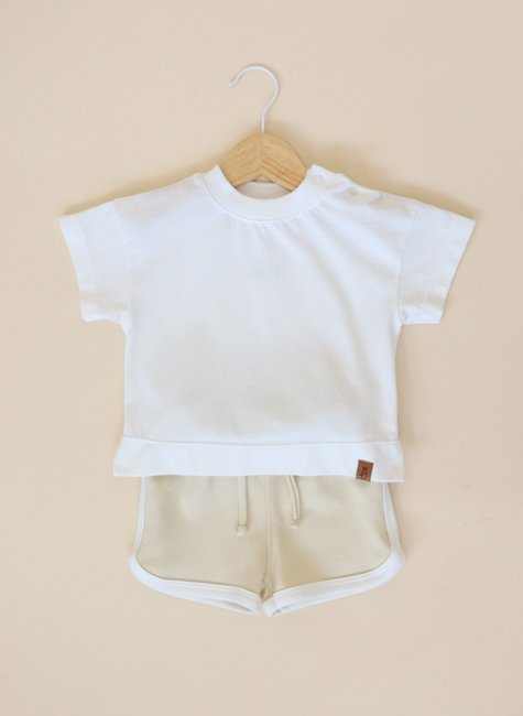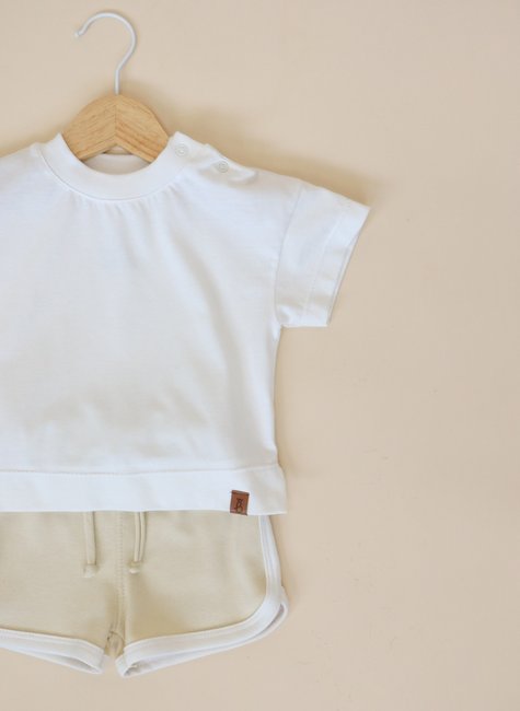 A modelagem delicada e fofa do short traz inspiração retrô, com caimento soltinho e confortável, enquanto a camiseta, com design oversized simples e bem estruturado, complementa o visual com leveza. Juntos, eles criam um look versátil, minimalista e cheio de personalidade, que transmite o equilíbrio perfeito entre conforto e autenticidade.