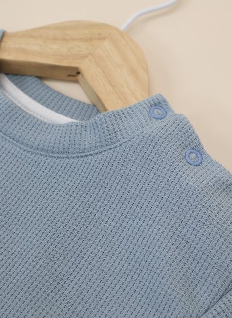 A malha waffle também facilita o cuidado diário com a peça. O conjunto resiste a múltiplas lavagens sem perder a forma ou a cor, e a composição de fibras é projetada para secar rapidamente, o que torna a rotina dos pais mais prática. A qualidade do tecido garante que, mesmo com o uso constante, o conjunto continue bonito, resistente e confortável.