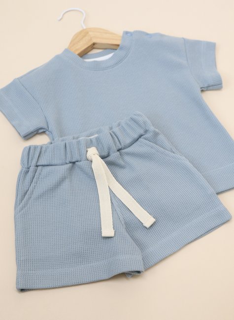 O Conjunto foi desenhado pensando na praticidade para os pais e no conforto do bebê. O shorts oferece liberdade de movimento para brincadeiras e atividades, enquanto a camiseta garante um toque suave e fresquinho. A textura waffle no tecido, traz um visual moderno e sofisticado, ideal para os pequenos que adoram estar confortáveis e cheios de estilo.