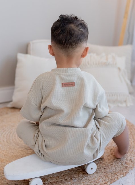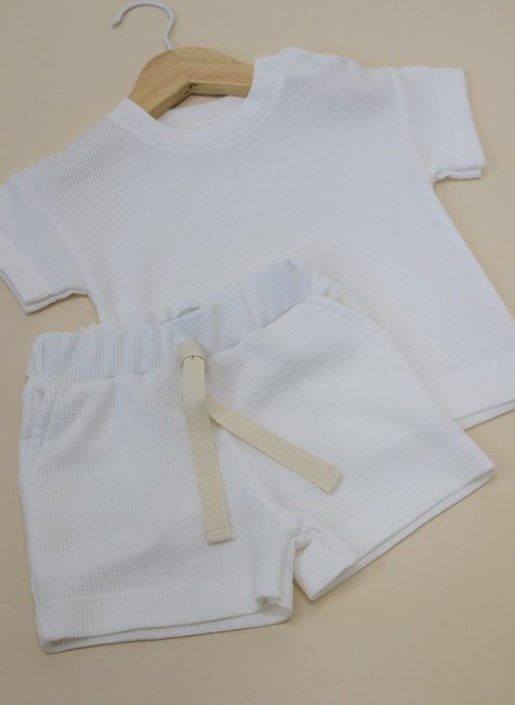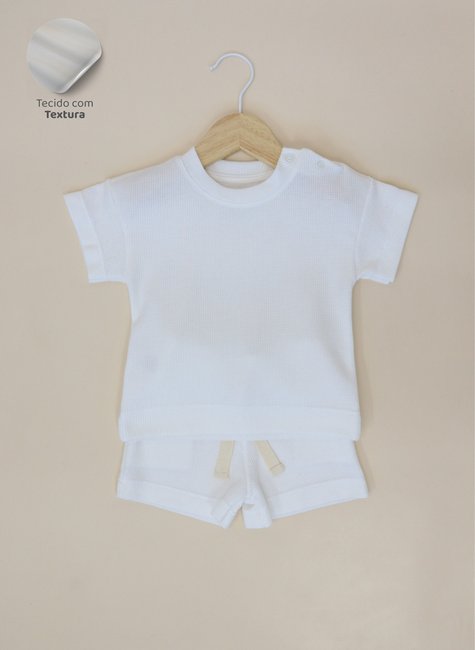 O Conjunto foi desenhado pensando na praticidade para os pais e no conforto do bebê. O shorts oferece liberdade de movimento para brincadeiras e atividades, enquanto a camiseta garante um toque suave e fresquinho. A textura waffle no tecido, traz um visual moderno e sofisticado, ideal para os pequenos que adoram estar confortáveis e cheios de estilo.