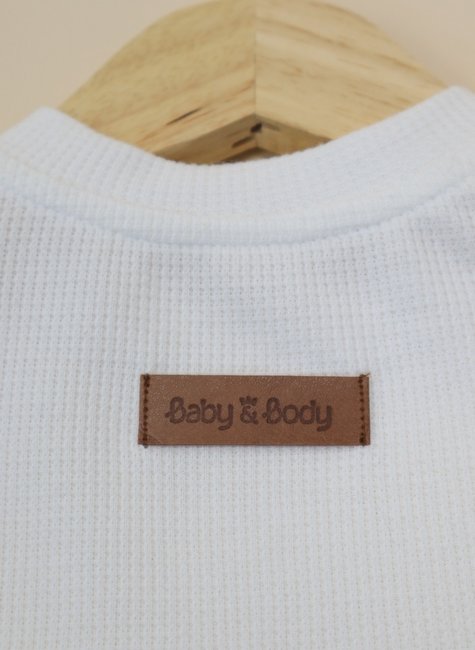 A malha Waffle, com sua textura única, não só adiciona um charme extra ao visual, mas também traz benefícios em termos de conforto e funcionalidade. A composição do tecido inclui poliéster tecnológico, que foi cuidadosamente utilizado de forma consciente e estratégica. Esse poliéster, apesar de ser sintético, foi selecionado para garantir durabilidade e resistência, sem comprometer a suavidade e o toque agradável da peça. O poliéster é utilizado de maneira equilibrada, com o objetivo de manter a qualidade do produto, sem impactar negativamente o conforto da pele do bebê. Ao contrário de outros tecidos sintéticos, o poliéster utilizado neste conjunto é projetado para ser hipoalergênico e não causar irritações na pele delicada do bebê. Ele colabora para que a peça seja resistente, fácil de cuidar e com uma durabilidade superior, mantendo sua forma e qualidade mesmo após várias lavagens.