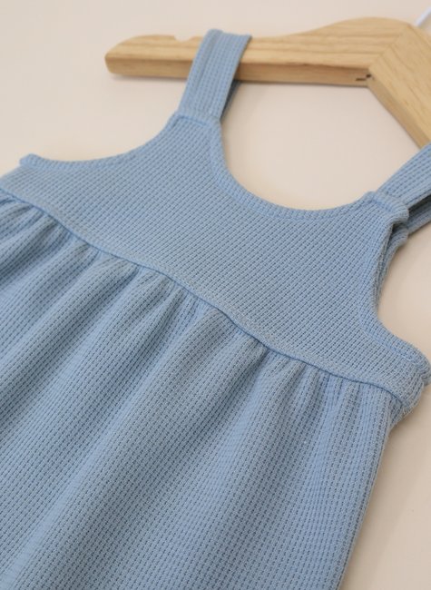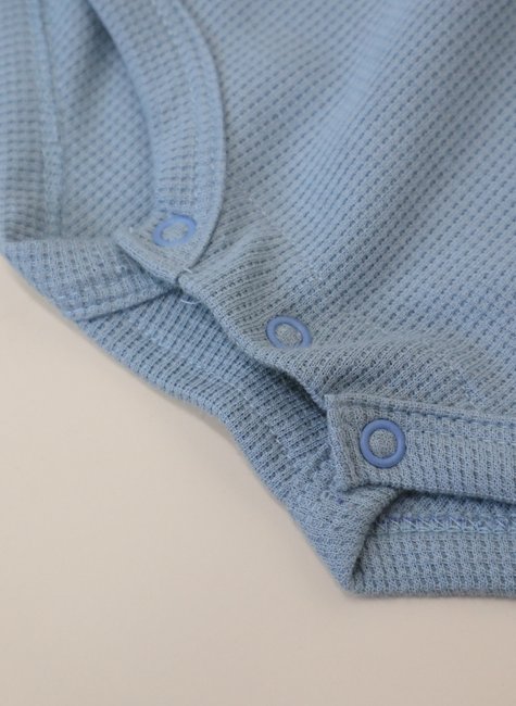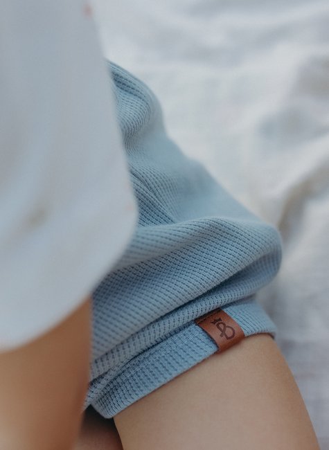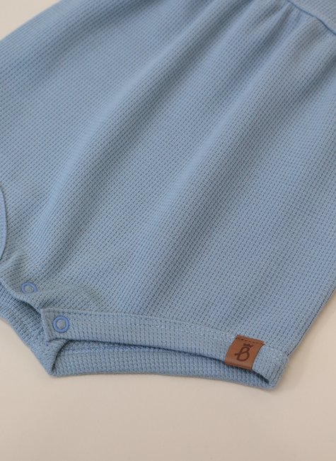 A textura em waffle é o grande diferencial dessa jardineira: ela forma pequenos relevos quadradinhos que lembram a maciez de uma colmeia, proporcionando um toque aconchegante e delicado. Além de ser extremamente agradável, essa textura confere um ar sofisticado e moderno à peça, reforçando o estilo minimalista e atemporal da Baby&Body.