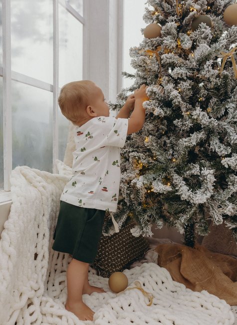 Perfeito para ensaios de Natal, fotos em família e encontros de fim de ano, o shorts natalino combina perfeitamente com as camisetas e bodies da coleção.